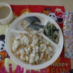 たけのこごはん、魚の塩焼き、ほうれん草のごま和え、みそ汁