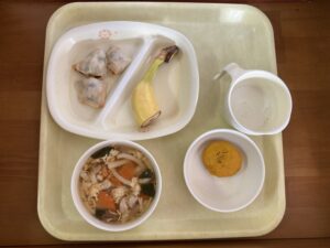 フォトギャラリー(12月9日の献立) 2025年12月15日 乳児部 在園児保護者様フォトギャラリー by admin. <給食> かき玉うどん、餃子、バナナ <おやつ> 牛乳、かぼちゃもち 前の記事 次の記事