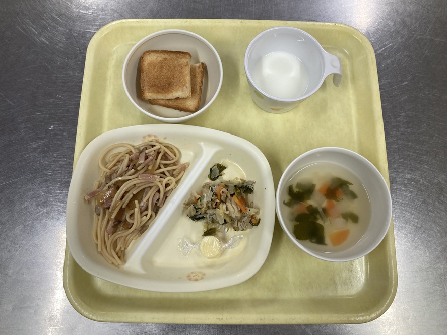 フォトギャラリー(12月23日の献立) 2026年1月13日 乳児部 在園児保護者様フォトギャラリー by admin. <給食> 和風スパゲッティ、白すとわかめのサラダ、チーズ、野菜スープ <おやつ> 牛乳、きなこサンド 前の記事 次の記事