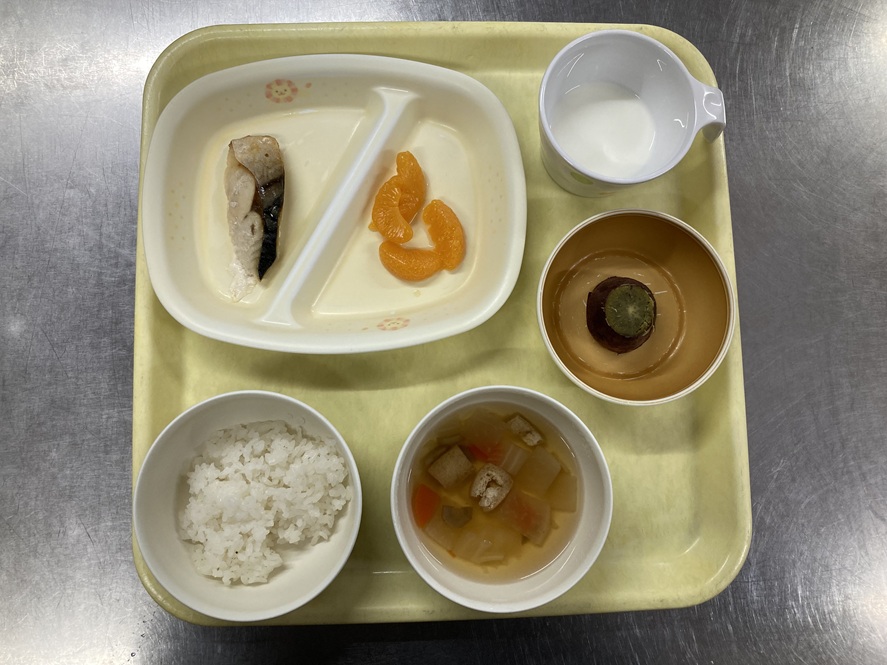 フォトギャラリー(1月21日の献立) 2026年1月27日 乳児部 在園児保護者様フォトギャラリー by admin. <給食> ごはん、魚の塩焼き、みかん缶、けんちん汁 <おやつ> 牛乳、焼いも 前の記事