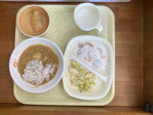 フォトギャラリー(2月12日の献立) 2026年2月19日 乳児部 在園児保護者様フォトギャラリー by admin. <給食> カレーライス、キャベツのサラダ、ヨーグルトサラダ <おやつ> 牛乳、りんごのコンポート 前の記事