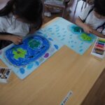 7月4日(木)年少は、アイスクリーム製作を行ない、デカルコマニーに挑戦しました。
