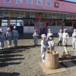 子ども達は、餅米の様子を見たり、実際に「よいしょ、よいしょ」と声をかけながらもちをついたり、おもちができるまでの過程に興味をもちながら、楽しく参加していました。