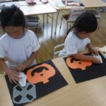 10月16日(木)年長組は10月の製作「ハロウィン」の仕上げをしました。